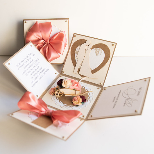 Pamiątka ślubu, exploding box, kartka Papiernik